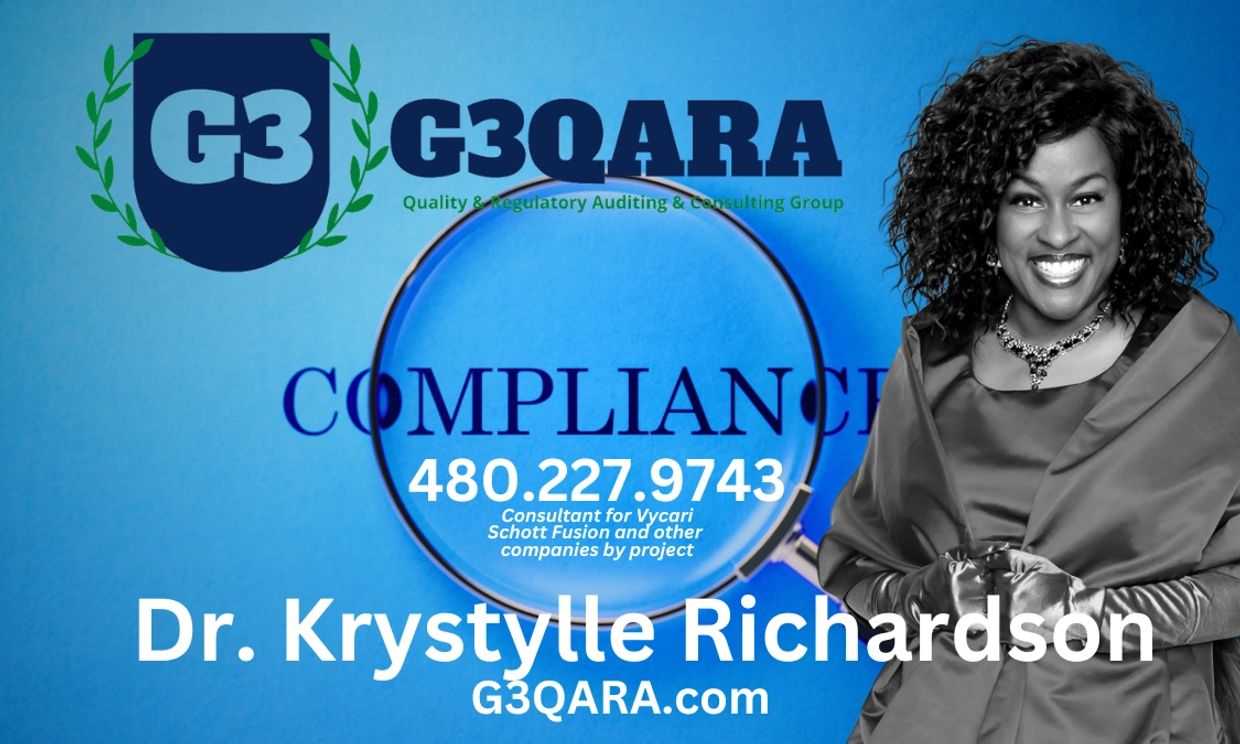 "Krystylle is a true expert in the Quality & Regulatory, and Software Quality fields. She has provided the leadership to support the implementation and ongoing improvement of our quality systems, leading to successful ISO 9001 & 13485 certification. She is an excellent communicator with all levels of the organization, with customers, and with external auditors. I strongly recommend consideration of Krystylle and her company G3 Quality and Regulatory Auditing and Consulting."